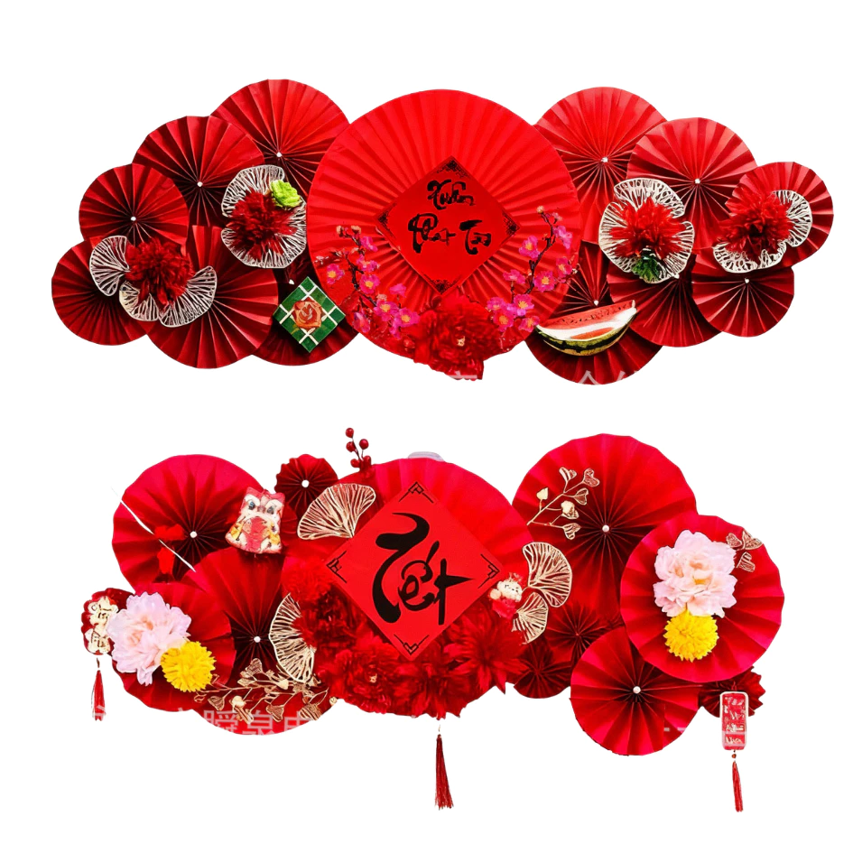 Sản phẩm Set Hoa, Quạt Đỏ Trang Trí Tết 2026 – giải pháp tiện lợi cho người bận rộn